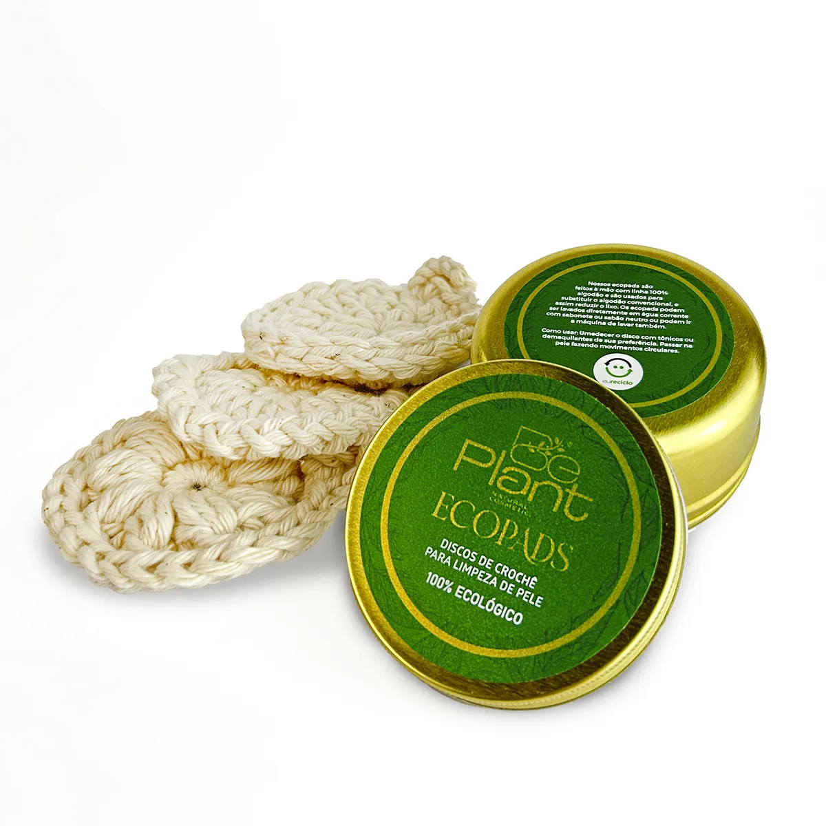 Feito com 100% algodão, o Ecopads é lavável, reutilizável e biodegradável, oferecendo uma alternativa ecológica aos tradicionais discos de algodão descartáveis. Seu processo de fabricação é totalmente manual e artesanal, fruto de uma collab que incentiva a produção local em Foz do Iguaçu e valoriza o trabalho artesanal da tecelagem manual.